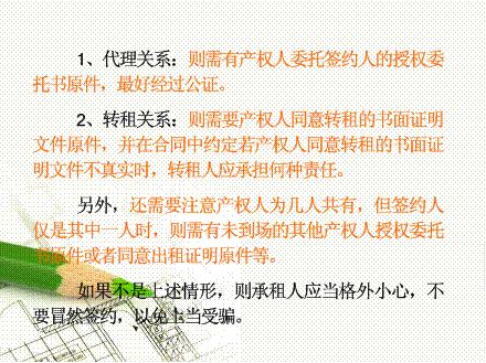 近日有网友问:租房时与我签合同的人不是房东怎么办?会不会被骗?出租人不是房东,一般存在两种情况:代理关系、转租关系。那么,能否和代理人、转租人签订合同呢?答案是:可以,但需要查明出租人身份,并要求出租人提供以下证明文件。