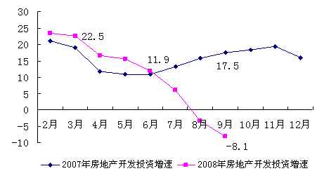 房屋销售价格同比涨幅回落明显。我市房屋销售价格自2007年7月开始快速上涨,去年10月同比涨幅达到最高点(15.1%) ,从今年4月份开始,房价涨幅逐月回落,9月份我市房屋销售价格同比上涨6.9%,涨幅比上月低2个百分点。