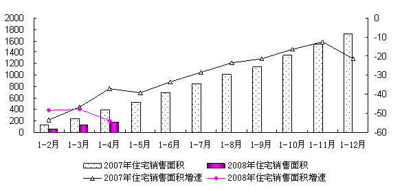 图1 2007-2008年累计住宅销售面积趋势图