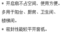 二、常用的门窗品种 1、PVC-U塑料门窗——俗称塑钢门窗。 产品标准:JG/T140—2005《未增塑聚氯乙烯(PVC-U)塑料窗》 JG/T180—2005《未增塑聚氯乙烯(PVC-U)塑料门》 平开窗主要系列有:58系列、60系列、65系列(北京市建委规定50系列以下属淘汰使用范围)。 推拉窗主要系列有:85系列、88系列、90系列。(北京市建委规定80系列以下属淘汰使用范围)。推拉窗是通过作用于窗扇的外力驱动滑轮滚动来实现窗扇启闭的。 2、铝合金门窗——简称铝门窗 产品标准:GB/T8479—2003《铝合金窗》,GB/T8478—2003《铝合金门》。 目前北京建筑市场用铝合金门窗为隔热断桥铝合金门窗,型材断冷桥方式主要有灌注式和隔条式,非隔热铝合金门窗属北京市建委淘汰使用范围。 3、铝木复合门窗——简称铝包木窗或木包铝窗 由实木和铝合金型材复合而成,室外侧是铝合金型材,颜色丰富装饰性强,耐腐蚀性、耐老化性较好。室内侧是实木材质,多采用指接方式,不易变形,与室内木质装饰协调效果好,属高档门窗。 4、实木门窗——简称木门窗 本世纪初从欧洲引进的高档门窗,有专用的加工设备,实木给人的感觉更贴近自然,古朴典雅,具有很好的装饰效果和装饰协调性。需要说明的是,现在的实木窗从材质、加工设备、加工工艺都有完整的系统,完全不同于60年代的木窗。 5、玻璃钢门窗 玻璃钢门窗是以玻璃纤维及其制品为增强材料,以不饱和聚酯树脂为基体材料,通过拉剂工艺生产出空腹异型材,经切割组装等工艺制成成品窗。玻璃钢门窗具有强度好,绝缘、保温、隔音、耐老化、耐腐蚀性好,对酸、碱、盐及大部分有机物,海水以及潮湿都有较好的抵抗能力,是潮湿、多雨和沿海地区、有腐蚀性介质的场所和气候环境恶劣地区的首选门窗,型材表面可喷涂成多种颜色。 产品标准:JG/T186—2006《玻璃纤维增强塑料(玻璃钢)窗》,JG/T185—2006《玻璃纤维增强塑料(玻璃钢)门》。 6、防盗安全门——简称防盗门 防盗门兼备防盗和安全的性能,具有坚固耐用、开启灵活、外形美观等特点。按照《防盗安全门通用技术条件》规定,合格的防盗门在15分钟内利用凿子、螺丝刀、撬棍等普通手工具和手电钻等便携式电动工具无法撬开或在门扇上开起一个615平方毫米的开口,或在锁定点150平方毫米的半圆内打开一个38平方毫米的开口。并且防盗门上使用的锁具必须是经过公安部检测中心检测合格的带有防钻功能的防盗门专用锁。防盗门可以用不同的材料制作,但只有达到标准检测合格,领取安全防范产品准产证的门才能称为防盗门。 产品标准:GB17565-2007《防盗安全门通用技术条件》 按照公安部颁布标准GB25-92《防盗安全门通用技术条件》,防盗门可分为栅栏式防盗门、实体门和复合门3种。 (1)栅栏式防盗门 平时较为常见的由钢管焊接而成的防盗门,它的最大优点是通风、轻便、造型美观,且价格相对较低。该防盗门上半部为栅栏式钢管或钢盘,下半部为冷轧钢板,采用多锁点锁定,保证了防盗门的防撬能力。但在防盗效果上不如封闭式防盗门。 (2)实体防盗门 采用冷轧钢板挤压而成,门板全部为钢板,钢板的厚度多为12毫米和15毫米,耐冲击力强。门扇双层钢板内填充岩棉保温防火材料,具有防盗、防火、绝热、隔声等功能。一般实体式防盗门都安装有猫眼、门铃等设施。 (3)复合式防盗门 由实体门与栅栏式防盗门组合而成,具有防盗和夏季防蝇蚊、通风纳凉和冬季保暖隔声的特点。 三、门窗分类 门窗常用的分类方法有三种:材质构造、开启形式、用途。 1、按材质构造区分 铝合金门窗:框、扇主型材由铝合金或断桥铝合金制作。 塑料门窗:框、扇主型材由PVC-U塑料制作。 实木门窗:框、扇主型材由实木制作。 玻璃钢门窗:框、扇主型材由玻璃纤维增强塑料制作。 复合门窗:框、扇主型材由两种或两种以上材料制作。如:铝木复合、铝塑复合。 百页门窗:由多片百页片制作的门窗。有外置百页窗和中空玻璃内置百页。 格栅门窗:由多(根)栅条制作的门窗。 纱门窗:门窗扇由纱网制作,可阻挡蚊蝇及飞虫。 组合窗:用拼框料连接组合的窗。 落地窗:通至地面的长窗,开启扇可作门用。 单层窗:一层窗扇的玻璃窗。 双层窗:二层窗扇的玻璃窗。 2、按开启形式区分 平开门窗:合页(铰链)装于门窗侧面、向内或向外开启的门窗。 推拉门窗:单扇、双扇或多扇向左右推拉的门窗。 折叠门窗:可多扇折叠开启的门窗。 平开下悬窗:开启扇即可平开又可下悬的窗。俗称内开内倾窗或内开内倒窗。 上悬窗:合页(铰链)装于窗上侧,向内或向外开启的窗。 中悬窗:轴装在窗门左右可沿轴转动的窗。 下悬窗:合页(铰链)装于窗下侧,向内或向外开启的窗。 固定窗:无可开启扇的窗。 弹簧门:弹簧合页(铰链)装于侧面,可单向或双向开启的门。 卷帘门窗:用页片、栅条、网格组成,可左右或上下卷动的门窗。 提升门窗:单扇或双扇可上下升降的门窗。 转门:单扇或多扇沿竖轴转动的门。 自动门窗:用信号控制自动开关的单扇、双扇或多扇的门窗。 3、按用途区分 内门窗:门窗扇两面均朝向室内的门窗。 外门窗:门窗扇至少有一面朝向室外的门窗。 防火门窗:发生火灾时能隔断火的门窗。 防盗门窗:配有防盗锁,在一定时间内可以抵抗一定条件下非正常开启。 隔声门窗:能减少噪音传递的门窗。 保温门窗:能减少不同温差下传热的门窗。 天