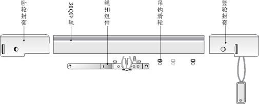 卷管和面料的连接方式和拉珠卷帘相同,底轨不仅连接面料还要安装连接拉绳的滑块,因而底轨的截面形状更为复杂。配置滑块方便操作者在左右不同位置均可操作。
