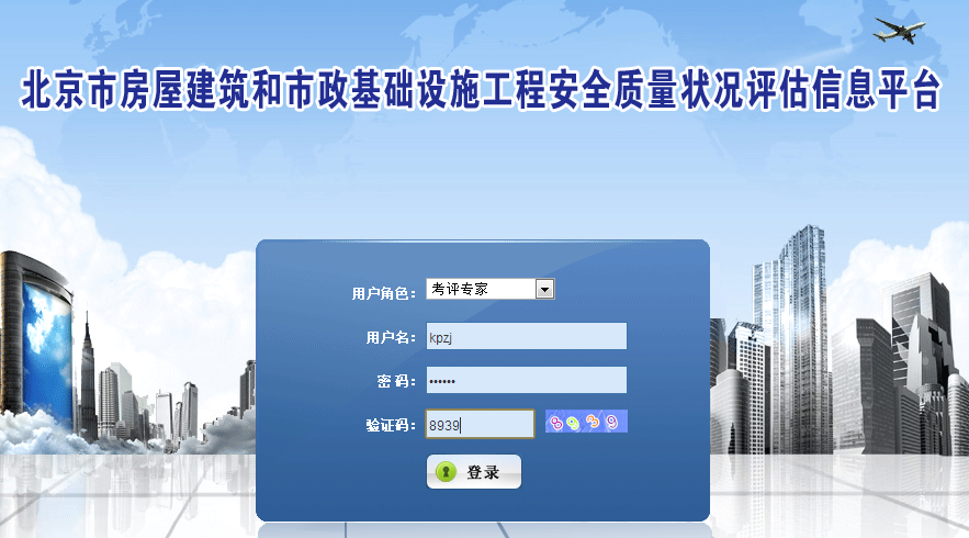 1)首先在计算机桌面双击游览器图标,打开浏览器,在浏览器地址栏输入评估信息平台地址//bjgccp.bjjs.gov.cn,选择用户角色为“项目考评主体”,输入用户名、密码、验证码,点击“登录”。