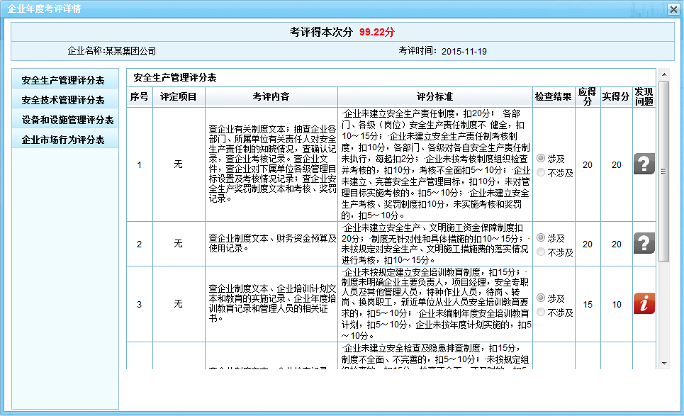 3)在“企业考评”界面中,点击考评得分,可查看考评打分情况;