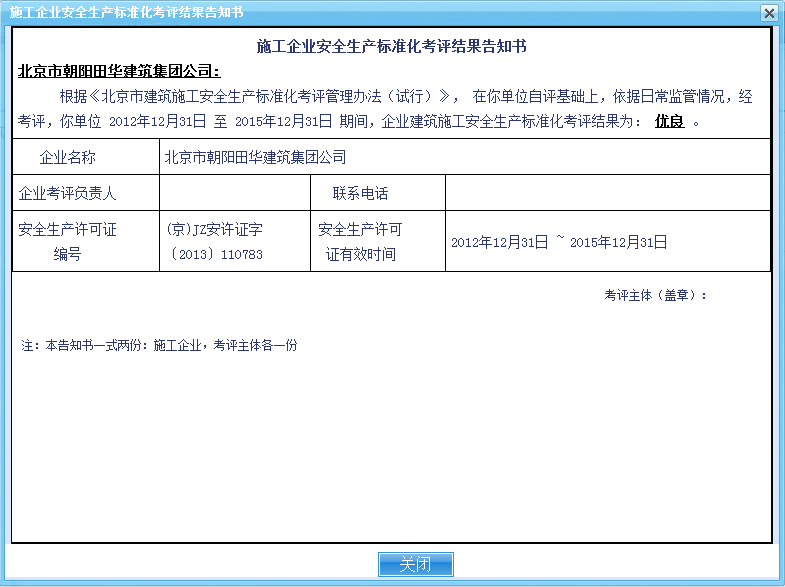 3)市施工安全管理处发送《施工企业安全生产标准化自评结果告知书》后,可查看自评结果。