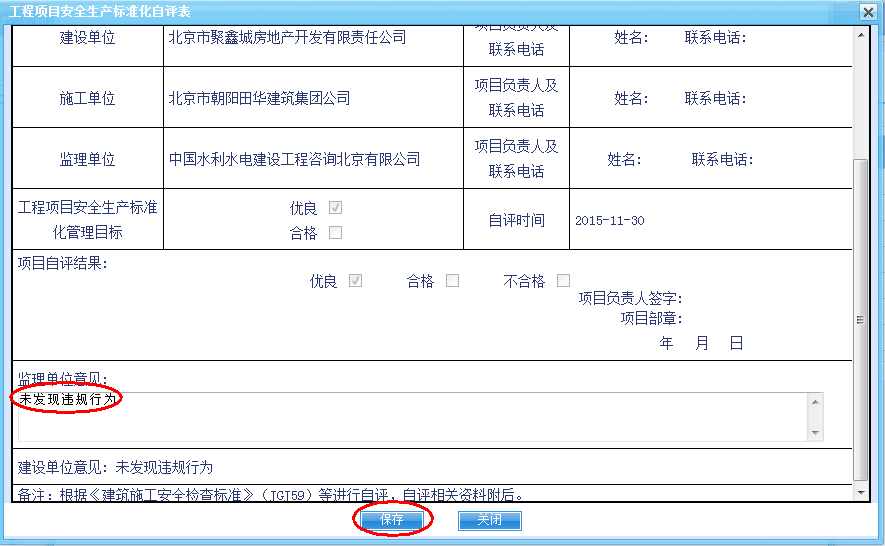 注:如果自评表状态为未填报,需要施工单位项目部填写自评表(见施工项目负责人使用说明中的填写自评表内容)。