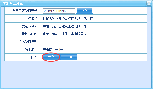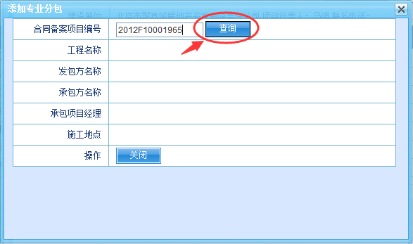 3)录入合同备案项目编号,点击“查询”,完成相关单位的添加。