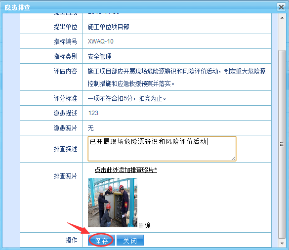 2)填写隐患排查信息。点击“保存”,系统提示“排查成功”;
