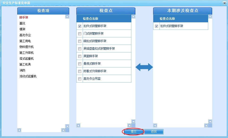 4)选择检查项目是否涉及,不涉及不打分;依据评分标准录入实际得分,如果有扣分项,需要在在发现问题栏,点击“?”,输入问题的文字描述;最后点击“提交考评结果”,将考评结果提交至市安全处进行初审。