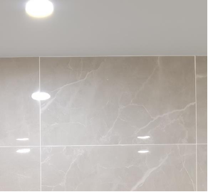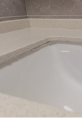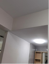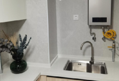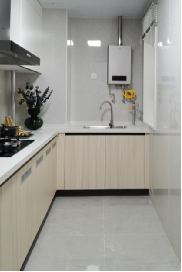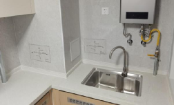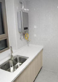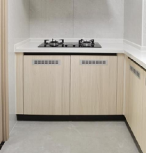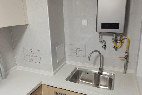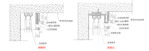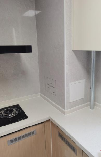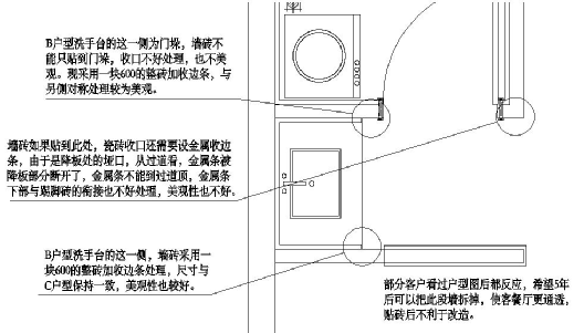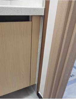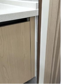 (三)电梯厅标准层的墙面和顶棚直接交接,不满足工法和外观要求,而且施工速度慢难度大。建议增加天花线脚来遮挡。公共走廊的灰色墙面建议调整。 回复:本项目电梯厅墙砖采用600×600mm瓷砖,竖向用砖4块半左右,顶上半砖现场裁切。施工时先进行墙面贴砖的施工,根据现场情况进行裁砖,尽量减少施工误差,控制在2mm左右。墙砖施工完成后再进行顶面的施工。顶面做找平时可以弥补墙砖的误差,可以达到顶部阴角的美观要求。 | | 公共区域现场照片 | 公共区域顶面找平现场照片 | | | 公共走廊效果图:墙面灰色 | 公共走廊效果图:墙面调整为白色 | (四)厨房墙面应预留预埋适当的承重点位并与结构连接牢靠安全;窗帘盒的轨道(或者罗马杆)的支撑点位要与结构连接牢靠安全。 回复:现厨房烟机、吊柜、燃气热水器等设备吊挂处均已增加加固板加固,考虑日后使用中增加厨具、支架等设备,在相应位置增设加固板预留条件,饰面相应位置贴加固区域标识。施工时做专项检查,确保窗帘盒轨道(或者罗马杆)的支撑点与结构连接牢靠安全。 (五)“每单元4户”的单元,B和B反户型的次卧室外窗及与相邻户型的阳台窗和空调机位板安装窗之间存在视觉干扰,空调机位板距离近存在防盗弱点,建议修改优化。 回复:相邻户型为A户型,A户型南侧的空调室外机检修窗采用磨砂玻璃处理。室外空调机机位采用封闭顶面,防止人员进出的措施。 (六)小区住宅外立面的色彩和材质,要在尊重地区上位规划和导则的基础上,努力与相邻现状住宅的色彩和材质保持协调。 回复:本小区邻近为紫贵御园小区,该小区立面裙房部分为暖灰色石材,建筑主体为暖黄色涂料。本小区建筑外立面色彩采用暖白色和暖灰色,达到与周边小区协调的目的,形成区域色彩协调。并且为了保证效果,在外立面涂料大面积施工前,做暖灰色、暖棕色、暖白色、暖黄色上墙样板,经设计单位及相关政府部门确认后进行实施。  | 外立面效果图 | 二、专家意见二 (一)合理性 1.厨房推拉门宽度。 回复:厨房推拉门洞口宽度1.5米,满足规范要求。  |  | C户型推拉门照片 | C户型推拉门照片 | 2.厨房燃气管经过的柜门设置排风百叶。 回复:样板间增加排风百叶。  |  | B户型调整前照片 | B户型调整后照片 | C户型橱柜优化后,水池下方柜体与右侧柜体联通,因此只在右侧柜体上加了排风百叶。  |  | C户型调整前照片 | C户型调整后照片 | 3.阳台是否需要安装隔断。 回复:不安装隔断使客厅空间更加明亮、整洁。 (二)模数:厨房墙、顶、地尽可能对缝处理。 回复:因地砖(600×600mm)为留缝(2mm)铺贴,墙板(600mm宽)为密拼(墙缝不明显),两者安装后尺寸不一致,且墙板和地砖铺贴起铺点原则不同,地砖从门口位置向内铺贴,墙板从门窗洞口向两侧排布,在安装橱柜和放上冰箱后,两缝是否对齐并不明显。现样板间已考虑此问题,进行了部分对缝处理。大面积实施前会考虑此问题尽可能实现对缝。  |  | C户型厨房实景照片 | B户型厨房实景照片 | (三)规范性:现场没软装样板间的家具示意应补充完善、统一。 回复:样板间增加标识  |  | 整改前 | 整改后:补充床头柜 |  |  | 整改前 | 整改后:补充床头柜 |  |  | 整改前 | 整改后:补充茶几等 | (四)工艺:多个细部要精细到位,现场某些小的节点存在明显问题。 回复:本项目施工过程中进一步加强质量控制,预防质量通病。样板间不完善的部位已整改,包括台下盆底,洗脸柜体收口,洗脸柜台面、挡水板,窗台收口处等,并更换挡水板重新打胶。 (五)优化 1.建筑梁与卫生间降板等形成的实际的梁争取更加美观。 回复:卫生间结构降板图纸已修改,样板间已按照修改后图纸进行调整。  |  | 整改前 | 整改后:调整梁高,使梁下皮同高 |  | | B户型整改前 | B户型整改后 | | | C户型整改前 | C户型整改后 | 2.卧室里的梁(C户型)对家具有影响,也应提前做好现场引导说明的培训工作。 回复:已对销售人员进行培训,并在家具标识上增加文字说明,限制柜体高度。 3.一般来说电箱不设置在卧室里,提前与审图单位沟通。 回复:已与审图单位沟通,弱电箱位置满足设计规范要求。  | 弱电箱位于卧室门后 | 三、专家意见三 全装修样板间(B、C户型)意见如下 1.厨房装配式墙面阴、阳角收边,窗套、窗台收边,吊顶收边,建议优化调整,并应考虑日后使用中增加悬挂柜体、支架等预埋固定条件的要求。 回复:(1)装配式墙板阴角增加阴角铝型材收口,并补充阴阳角、窗套、吊顶收边等节点;(详见附图) | | 阴阳角收口示意图 | 铝扣板吊顶收边示意图 | | | 整体窗套安装示意图 | | 调整后照片 (墙面阴阳角、加固板安装后照片) |  |  |  | 调整前:墙面未加加固板 | 调整前:墙面未加阴角条 | 调整前:窗套侧边无堵头 | | | | 调整后:墙面增设加固板 | 调整后:墙面增设阴角条 | 调整后:窗套侧边增设专用堵头 | | | | | (2)考虑日后使用中增加厨具、支架等设备,在相应位置增设加固板预留条件,并在饰面相应位置贴加固区域标识。 (二)厨房窗套、窗台采用单层钢板体系,建议优化调整,确保使用功能和整体观感效果及施工质量。 回复:优化窗套、窗套板做法,窗套内增加基层板,侧边加专用堵头封堵,具体如下: | | 窗套安装示意图 |  |  | 调整前:窗套侧未封堵 | 调整后:窗套侧采用专用堵封堵 | (三)厨房推拉门开启不灵活,易变形;橱柜柜体靠冰箱处门扇开启问题,建议优